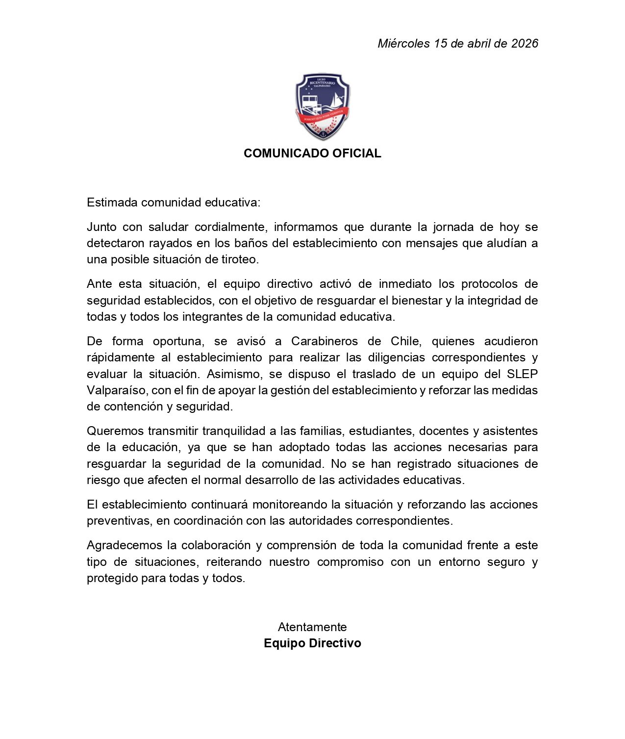 COMUNICADO OFICIAL 15/04